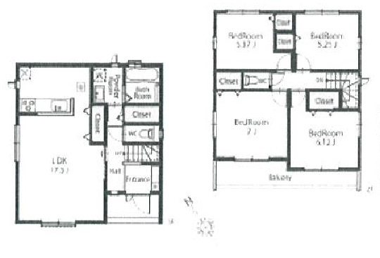 | 間取 | 4LDK(LDK17.3、洋室5.2、5.3、6.1、7) | 駐車場 | カースペース2台 |