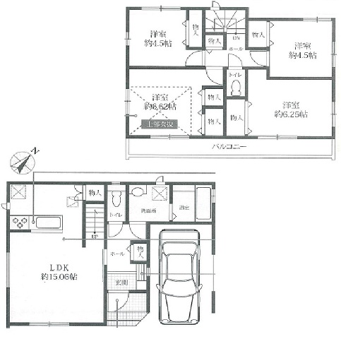| 間取 | 4LDK(LDK15、洋室4.5、4.5、6.2、6.6) | 駐車場 | カースペース1台 |