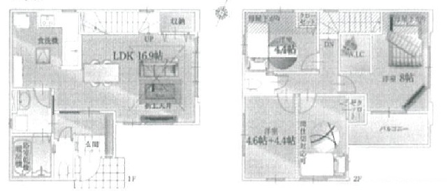 | 間取 | 4LDK(LDK16.9、洋室4.4、4.4、4.6、8) | 駐車場 | カースペース2台 |
