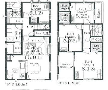 | 間取 | 4LDK(LDK15.9、洋室5.1、5.2、6.7、8.1) | 駐車場 | カースペース2台 |