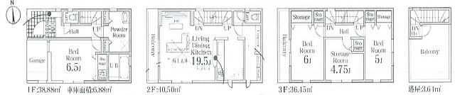 | 間取 | 4LDK(LDK19.5、洋室4.7、5、6、6.5) | 駐車場 | カースペース2台 |