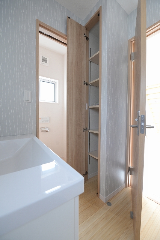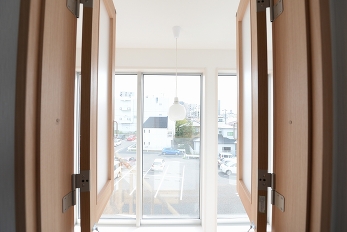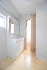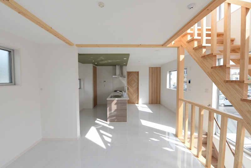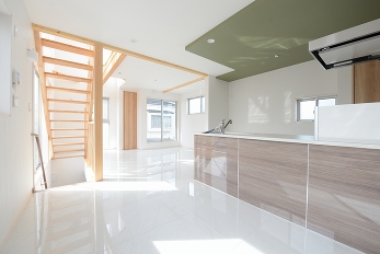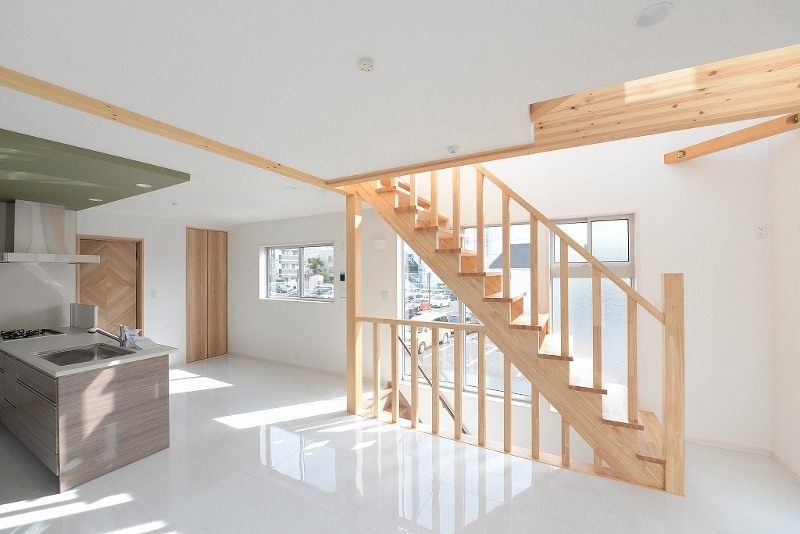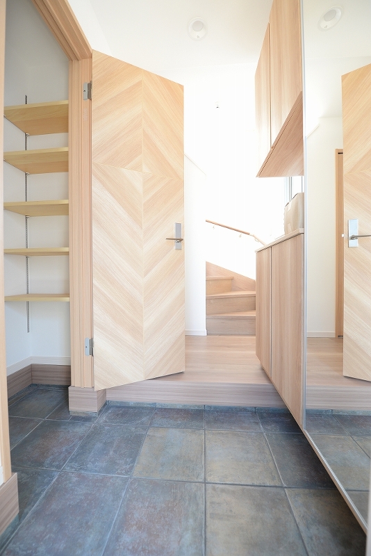 こだわりポイント玄関の土間収納を設置しました。2階のリビングは吹抜けとストリップ階段から採光を確保し明るく快適な空間になりました!