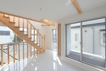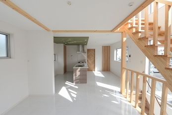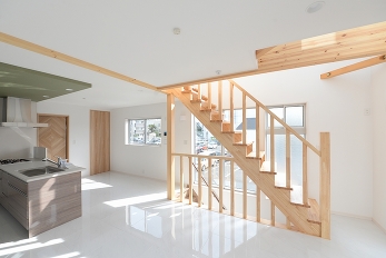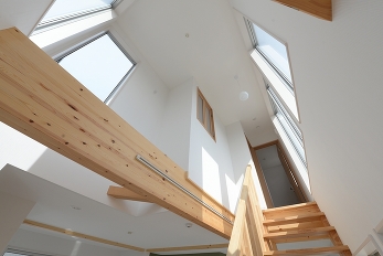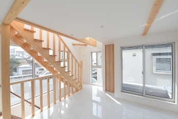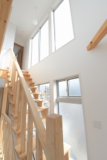 家族が繋がる光の家・鬼越編~木造3階!吹抜けストリップ階段から採光が…明るいです~