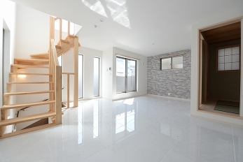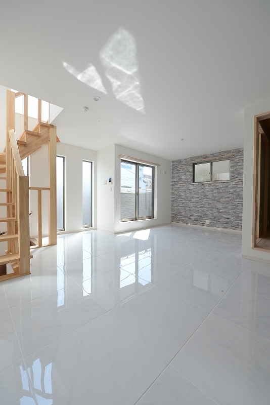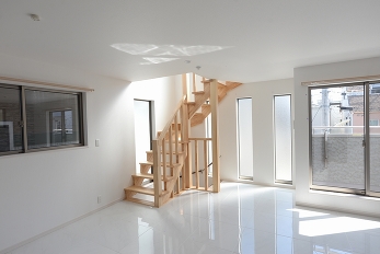 こだわりポイント採光と通風をよく考えた木造3階建てが完成しました!リビングの床にはセラミックタイルを敷いて、ガス温水床暖房を設置しました!とにかく明るいです!