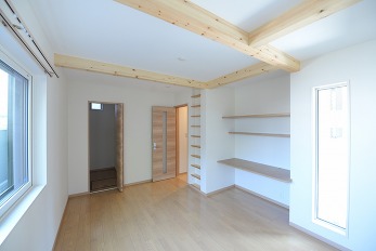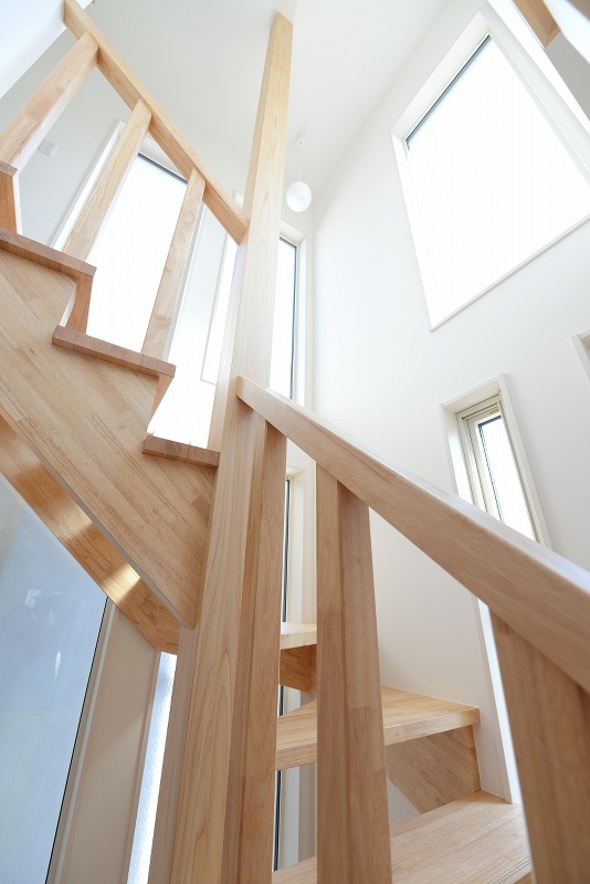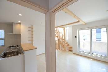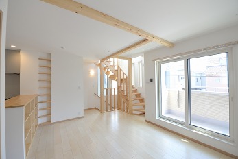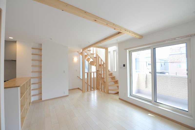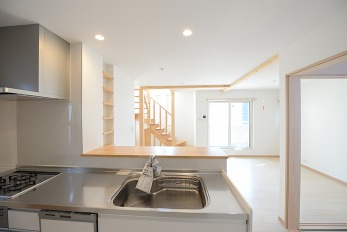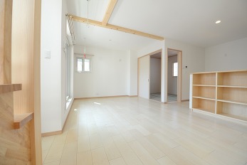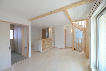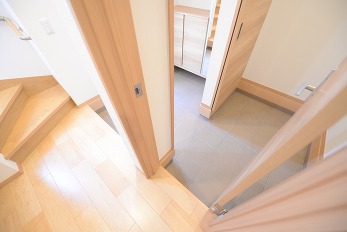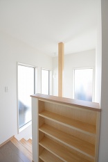 こだわりポイント玄関には大型収納を造り、2way式にして充実させました。2階リビングには吹抜けを設置し、3階からの採光を取込みます。明るく快適な家に仕上がりました。