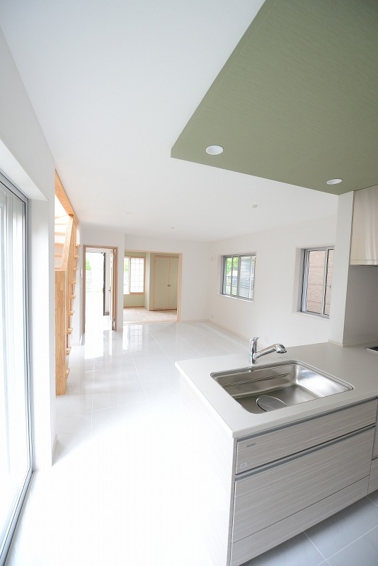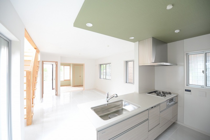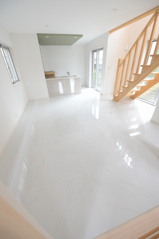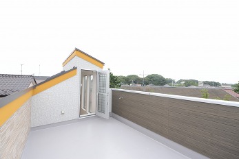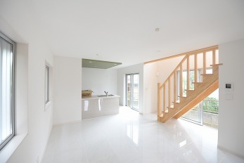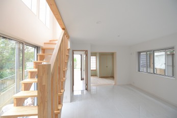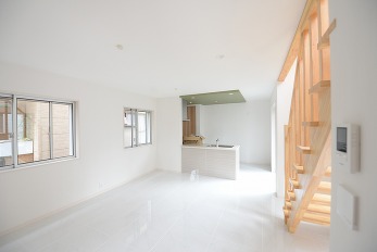 こだわりポイント屋上バルコニーが付いた開放的な家です!1階リビングにはストリップ階段を設置して上部から採光を取込み、2階の吹抜けのロフトからはトップライトで天空の光を取込みます!セラミックタイルを敷詰めガス温水床暖房も設置し、明るく快適な家に仕上がりました!