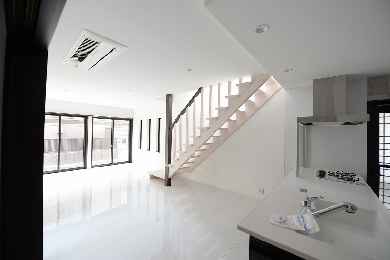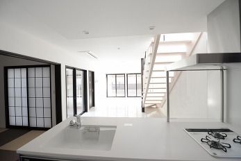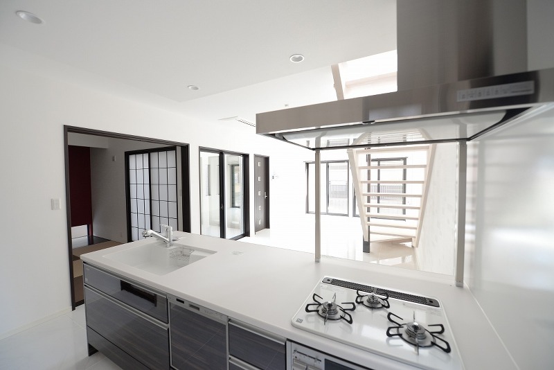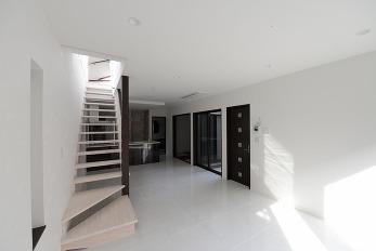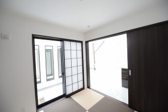 こだわりポイントパティオを設置したことにより家に奥行きが感じられます!和室はシックに、リビングは明るく開放的にしてメリハリのある空間が完成です!床にはセラミックタイルを敷詰めガス温水床暖房を設置しました!